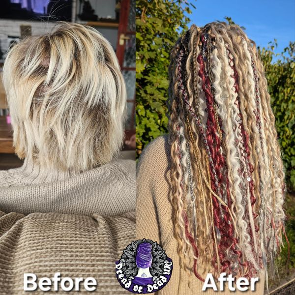 Fresh real crochet dreadlocks with custom made blonde 100% human hair extensions